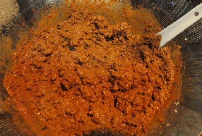 第三步:用辣椒的時候最好用辣椒面,然後準備一些黃沙。黃沙準備好後,磨得更細,然後和辣椒面一起倒入碗中,混合均勻,攪拌均勻後,加入一勺精鹽,倒入一些白酒。