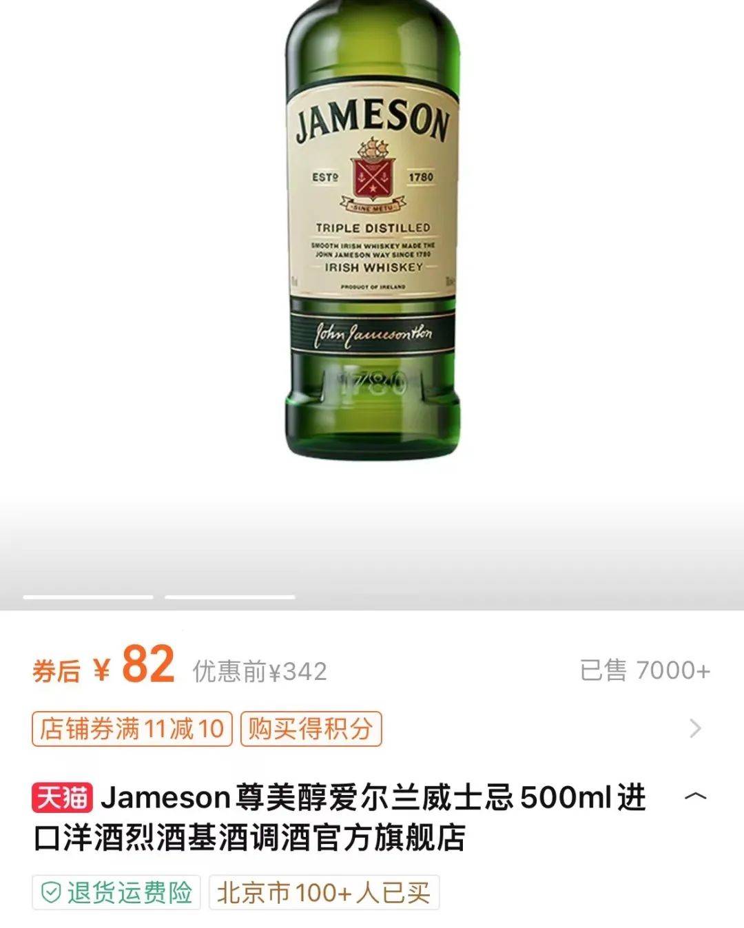 針對漲價情況,酒訊登錄保樂力加天貓旗艦店,店內銷量最高產品尊美醇愛爾蘭威士忌500ml已售7000+,定價342元/瓶,優惠後到手價為82元/瓶,百齡壇特醇威士忌200ml已售1000+,定價336元/瓶,優惠後到手價為36元/瓶。從單一麥芽威士忌品類來看,整體呈現價格與銷量成反比的趨勢,格蘭威特8年三桶陳釀700ml、格蘭威特21年陳釀700ml等千元以上產品銷量不足20筆。