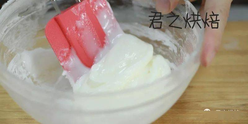 接著制作糖霜。將雞蛋清用筷子或打蛋器攪打,打散之後,和糖粉混合。用刮刀不斷翻拌,使糖粉和蛋清完全融合,成為稠厚的糖霜狀。
