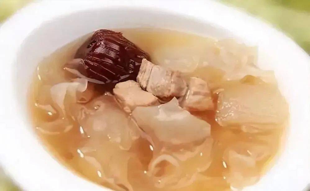 食材:鴨肉、幹銀耳、枸杞子、薑片、鹽。