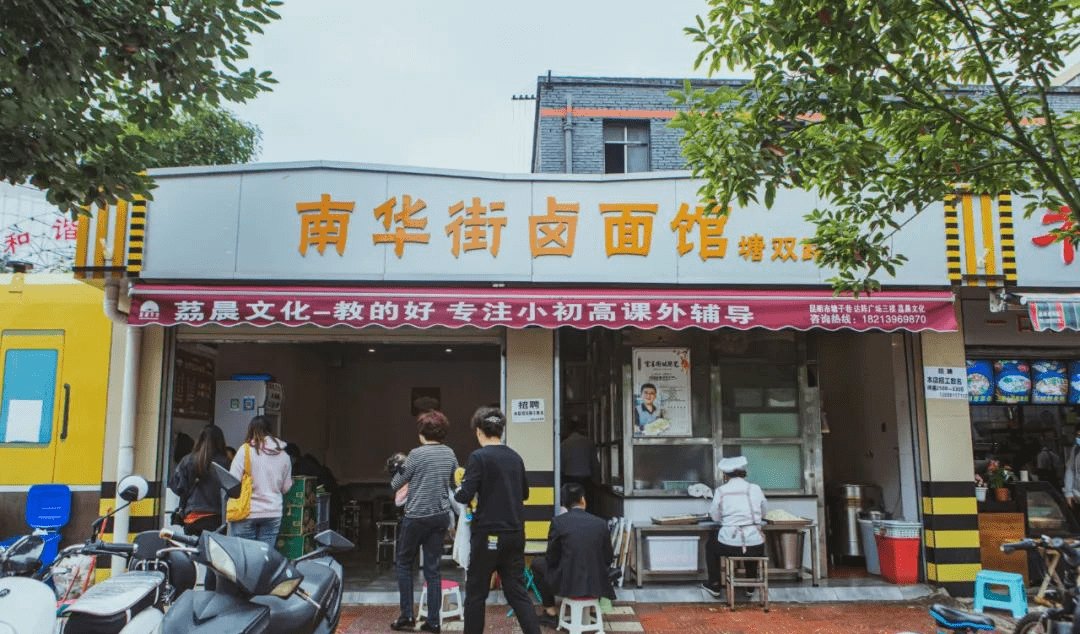 南華鹵面大約開設於1991年,至今已有32年的歷史。開業之初就吸引瞭大批食客,高峰期要去面館用餐就得大排長龍。很多人排隊一小時也要進店吃一碗面,和現在許多人排隊也要嘗一嘗網紅店一樣,食客對於美食的執著和熱愛不分年代,都是如此相似。和一些網紅店紅極一時卻逐漸沒落不一樣,這傢鹵面店30多年來傳承瞭三代人,但是生意依舊紅火,店裡不僅有聞名來打卡的新食客,更有多年一直捧場光顧的老食客。