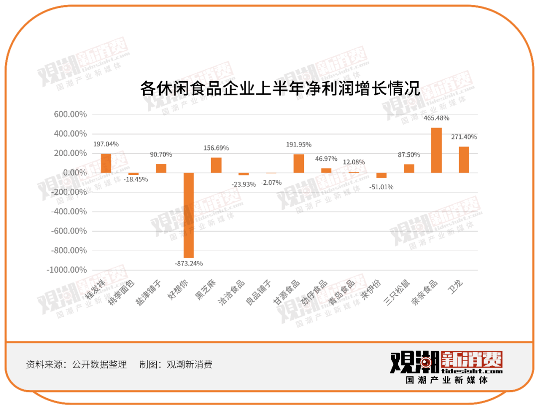 比如甘源食品,上半年實現營收8.26億元,同比增長34.57%;歸母凈利潤1.2億元,同比增長190.92%。