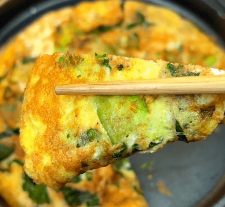 5、待表面有點小氣泡,微微凝固時就可以翻面瞭。翻面後再略煎1分鐘左右即可出鍋。