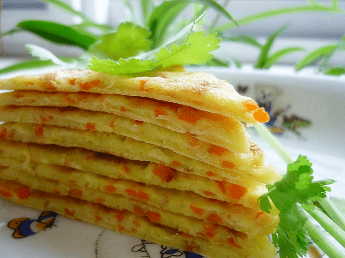 【食材】胡蘿卜半根、香蔥一根、雞蛋一個、面粉適量、水適量、鹽適量、胡椒粉適量。