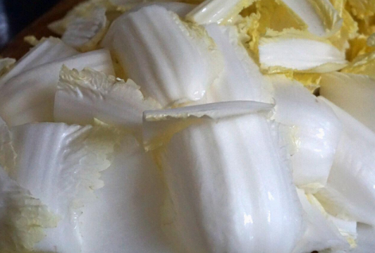 1、將白菜葉一片一片洗幹凈,現在的蔬菜竟然撒很多農藥,一片一片洗會更幹凈,如果不喜歡吃老葉子,可以摘掉,用刀就菜葉切成菱形,不要不太小瞭,要不然一炒就更小瞭。2、鍋中燒熱水,燒水期間要在鍋中滴上幾滴的食用油和一點點的鹽,這樣可以使白菜更加脆,水開後就準備好的白菜放在鍋中焯水。