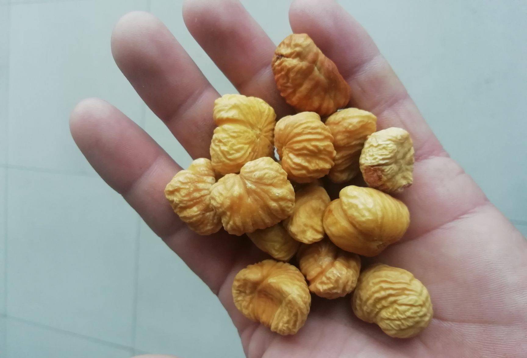 板栗連皮一起吃效果更佳。曬幹後,板栗的皮和仁都會收縮,吃起來味道鮮美。您可以將它們放在嘴裡軟化,或者在食用前將它們浸泡在熱水中軟化。味道也不同。