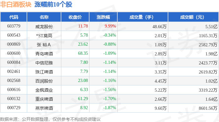 北向資金方面,當日非白酒板塊北向資金持股市值為49.59億元,減持0.39億元。其中增持最多的是重慶啤酒,增持瞭358.9萬元。減持持最多的是青島啤酒,減持瞭0.14億元。非白酒板塊北向資金持股變動明細見下表: