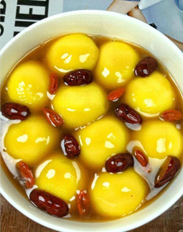 材料:紅糖,枸杞,紅棗,水淀粉,大黃米湯圓。