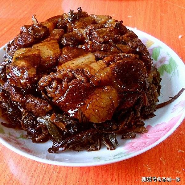 食材:幹菜300克、五花肉1斤、幹辣椒、豆豉、鹽、味精;
