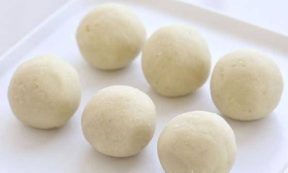 4.然後我們要在小面團上塗上一層水。完成這一步後,我們找一個盤子,在盤子上撒上芝麻。芝麻一定要煮熟。然後我們在面團上均勻地撒上芝麻。包好後,我們要把面團壓扁;