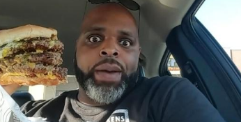很多人應該覺得漢堡不管怎麼做形象味道應該都是差不多的吧,但是黑人老外告訴你漢堡之間還是有區別的。這個黑人老外到瞭國外的一傢快餐店,發現這傢店的漢堡是有各種尺寸的,在中國你肯定還沒有遇見過可以定制尺寸的漢堡吧,因為這個老外的食量也是很大的,於是他就給自己點瞭一個最大尺寸的芝士漢堡。這個芝士漢堡果然沒有讓你失望,拿到手的時候你會徹底被它驚到的。