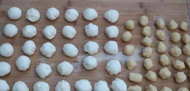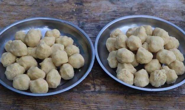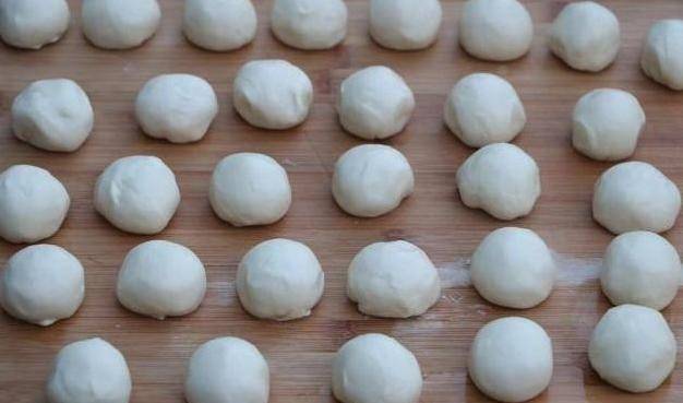 5、將水油面團揉成小面團,將面團揉成比水油面團更小的面團,如圖。
