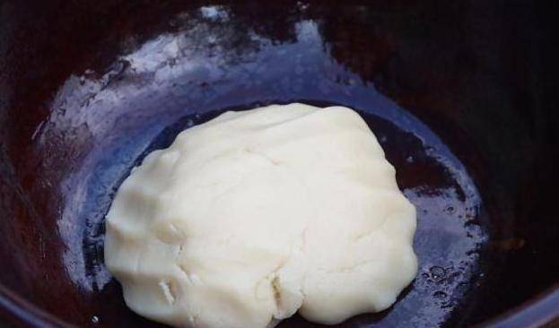 4. 制作面團時,將面粉和玉米油倒入幹凈的碗中,揉成面團,靜置約30分鐘。