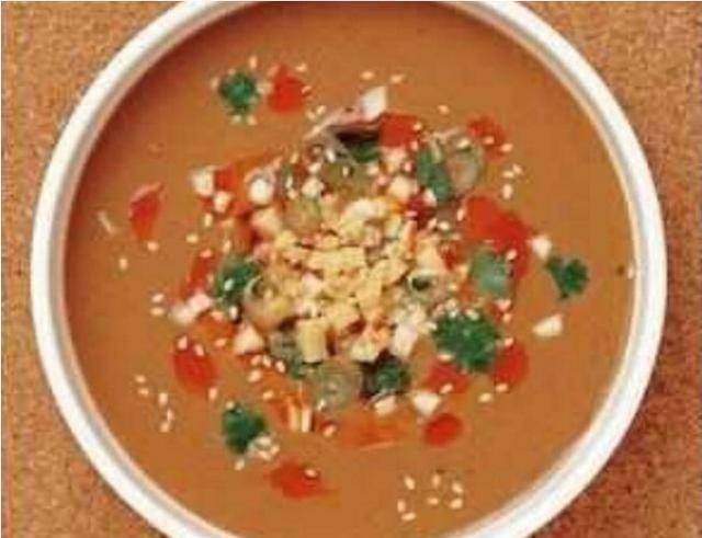 第二沾配料:芝麻醬10克、甜面醬5克、蔥花5克、豆腐乳10毫升、洛基奧花5克、熟芝麻5克、香菜碎10克、辣椒油5毫升、花椒油5毫升、香油5毫升、蝦油1毫升、鹽3克、水適量。芝麻醬加適量水調勻。將準備好的芝麻醬與其他材料混合均勻即可食用。