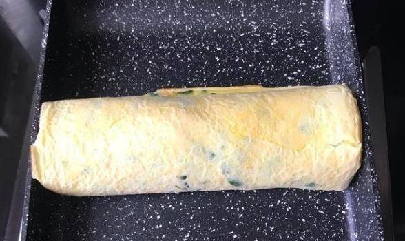 5.煎到一側直到形成後,將另一側炒至變黃,然後將其卷成條並將其放在盤子上。然後倒入其餘的面糊中,做同樣的事情。