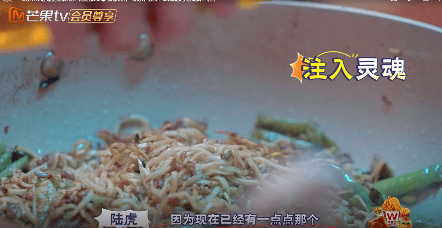 本來以為,燜面是虎子新學的,未必做得好,但是沒料到,關於怎麼做這道菜,他還真能說出個所以然來。比如,為什麼要用2種不同的豆角?味道好的關鍵是什麼?焦香的口感是怎麼來的?再看到節目都沒特寫的鏡頭裡,虎子把豆芽的根兒默默的掐瞭,豆角和豆芽都折得整整齊齊,不得不說,就這細致程度,那絕對不是大忽悠。