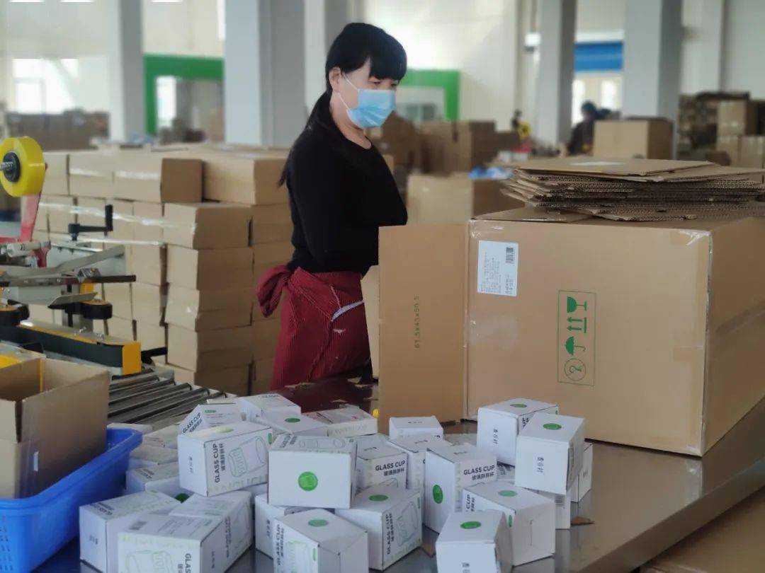 ▲亳州華韻夏青“雲倉”工作人員在打包快遞。