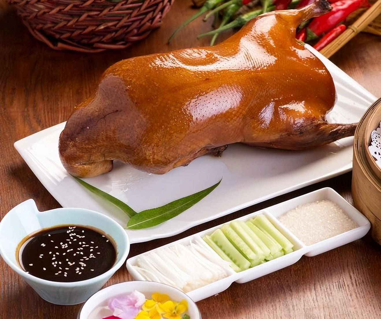 北京烤鴨有兩大流派,而北京最有名的烤鴨店也分別瞭這兩派的特色。這種美味被贊譽為“天下美味”,主要因為它色澤艷麗,味道濃厚,肥而不膩。北京烤鴨在烹飪過程中有著獨特的技巧,包括掛爐烤制、薄如紙片的鴨皮、用蔥、黃瓜和甜面醬一起包裹著吃的傳統方式,烤鴨蘸醬更是別具特色。