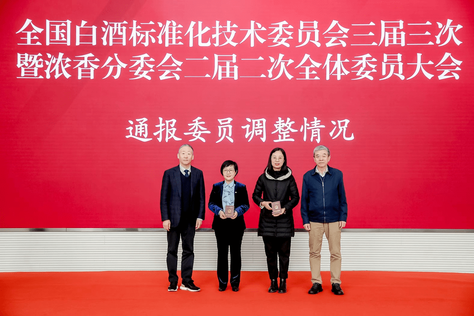 本次大會上,第三屆白酒標準化技術委員會還為增補的副主任委員和委員現場頒發證書。其中,宜賓五糧液股份有限公司總工程師楊韻霞等2人增補為第三屆全國白酒標委會副主任委員,宜賓五糧液酒廠有限公司安明哲等10人增補為第三屆全國白酒標委會委員。