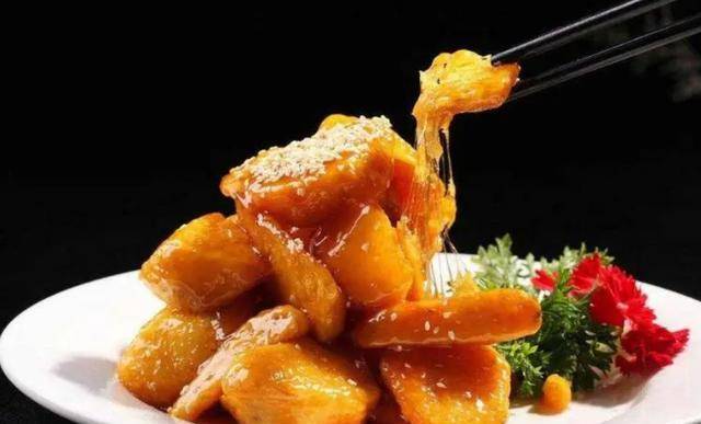 6.享用:拔絲紅薯即可食用,甜蜜香軟,是一道美味的甜品或下午茶點心。