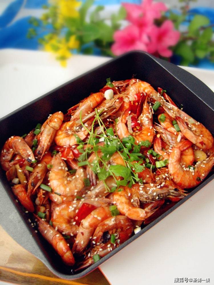 食材:大蝦,小米辣,青線椒,蔥段,蒜末。