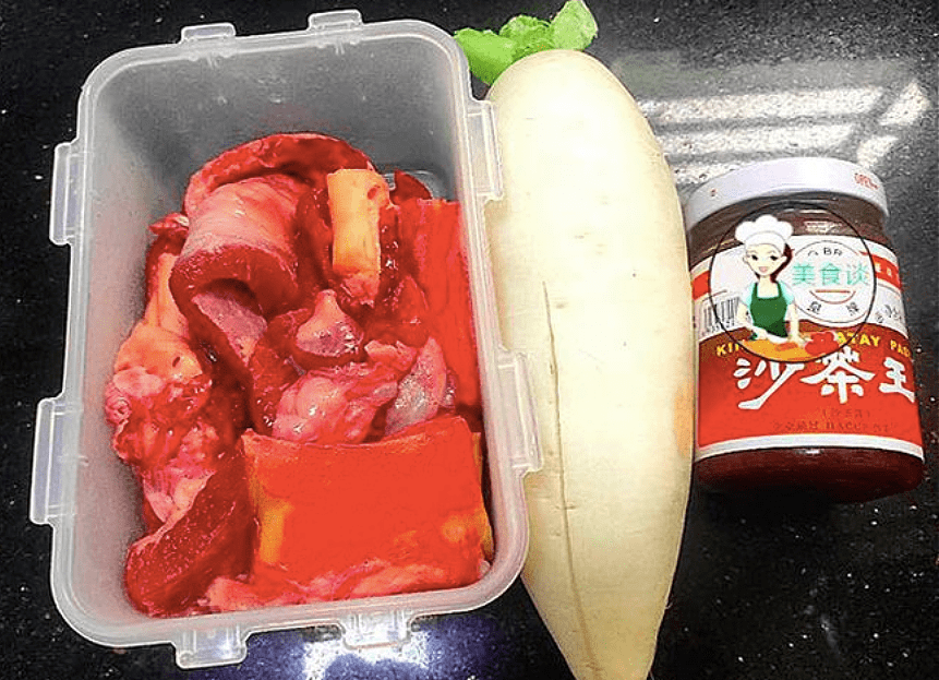 食材:牛腩、白蘿卜、沙茶醬、蔥薑蒜。