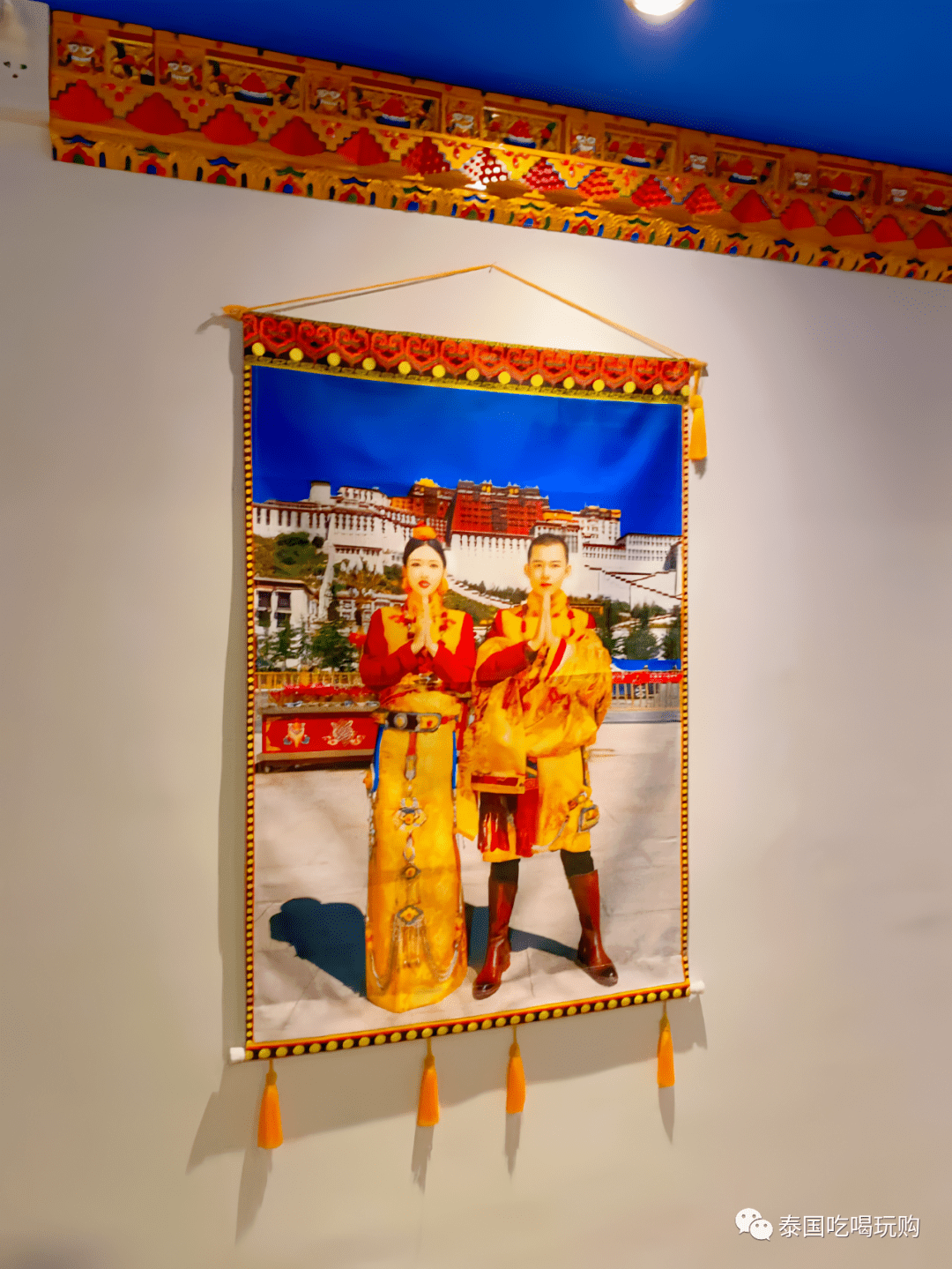 走進店裡,更是藏族元素滿滿,好多個藏式大帳篷、身穿藏族服飾的模特旗幟、各種藏族特色的壁掛和壁畫,給人一種彷佛真的來到瞭佈達拉宮的感覺。帳篷可以隨意參觀,但是裡頭沒有餐桌,可以選擇在大堂或者包廂內就餐。