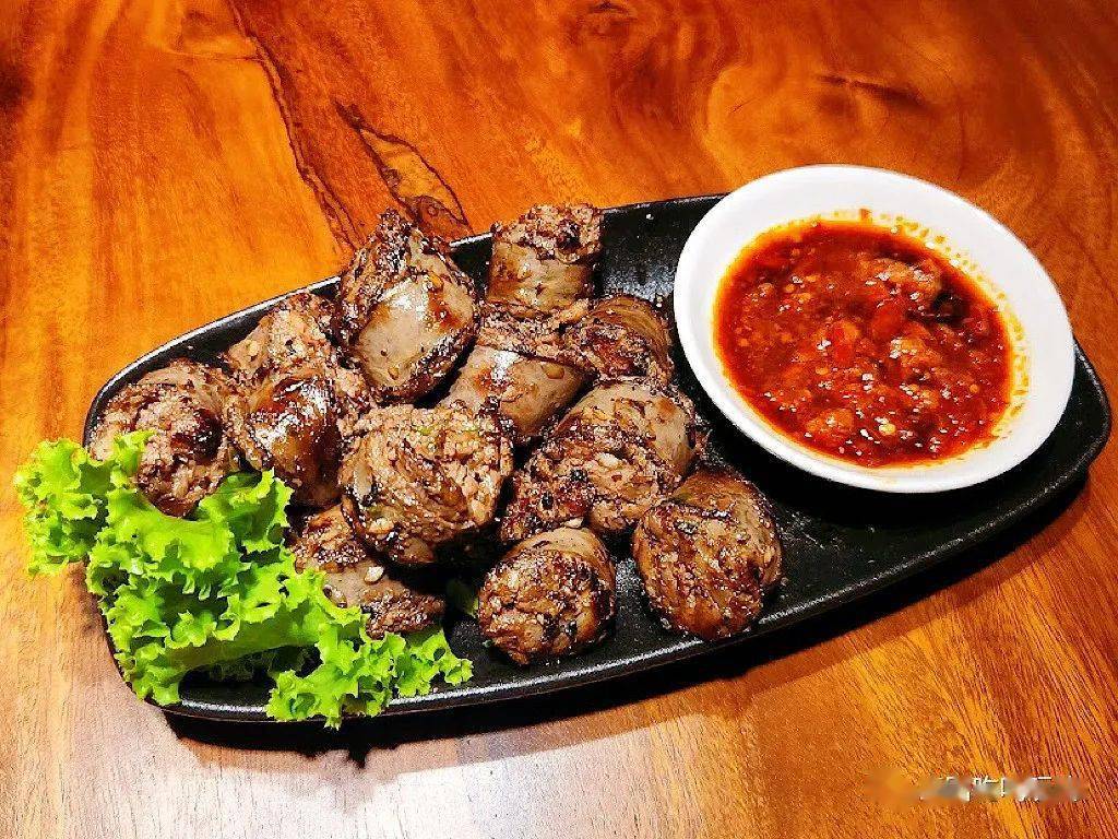 在藏區,現宰肥羊煮手抓肉和灌血腸,是待客最高級的禮儀。所以除瞭吃手抓肉,「灌血腸」也必吃,在羊血中放入適量的鹽、花椒等去腥,隨之灌入小腸,用線系成小段,入湯中煮沸,再將其煎制,方可食之。口感外焦裡嫩,裡面的羊血入口即化,外層腸衣越嚼越香。