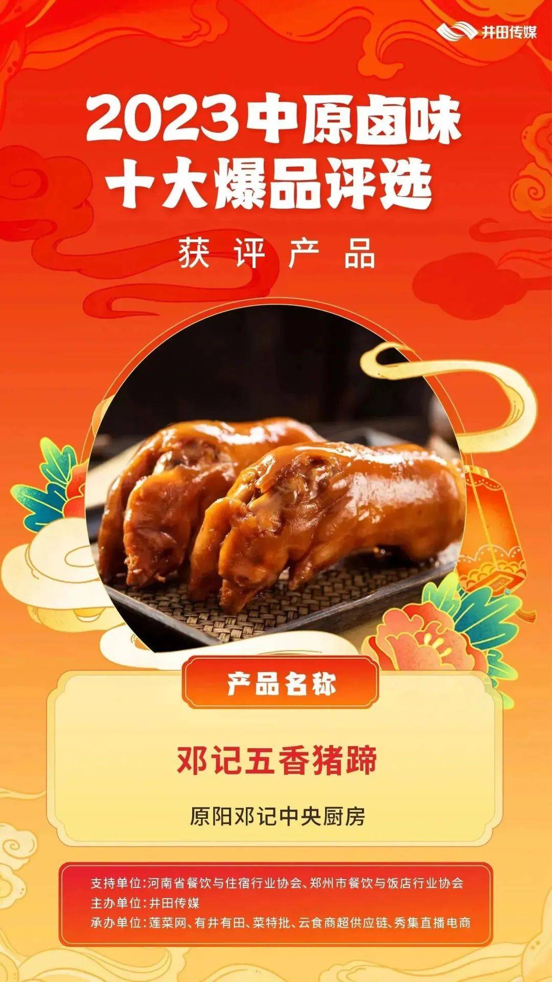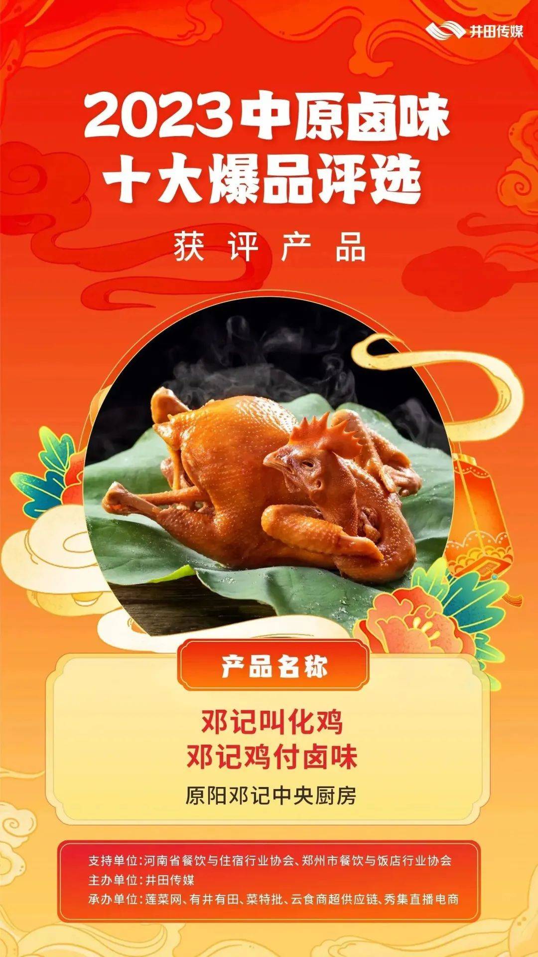 12月8日下午,鄭州市經開區蓮菜網南部配送中心,“2023中原鹵味十大爆品評選”頒獎儀式舉行,須水鄧記叫化雞、須水鄧記雞付鹵味、須水鄧記五香豬蹄三款產品上榜。