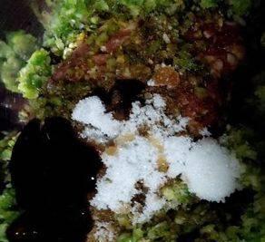 首先需要將豬肉磨成肉末,然後放入碗中,準備一些芹菜,去掉芹菜葉隻切芹菜桿,然後加少許鹽醃制2分鐘左右。 ,然後將芹菜中的水分擠出,將做好的芹菜放入肉末中。