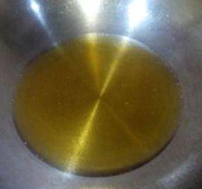 然後將油倒入熱鍋中。當油開始冒煙時,關掉火。天氣熱時,將其倒在調味料上。用筷子向一個方向快速攪拌。攪拌至光滑,然後將芝麻油倒在上面。呢絨