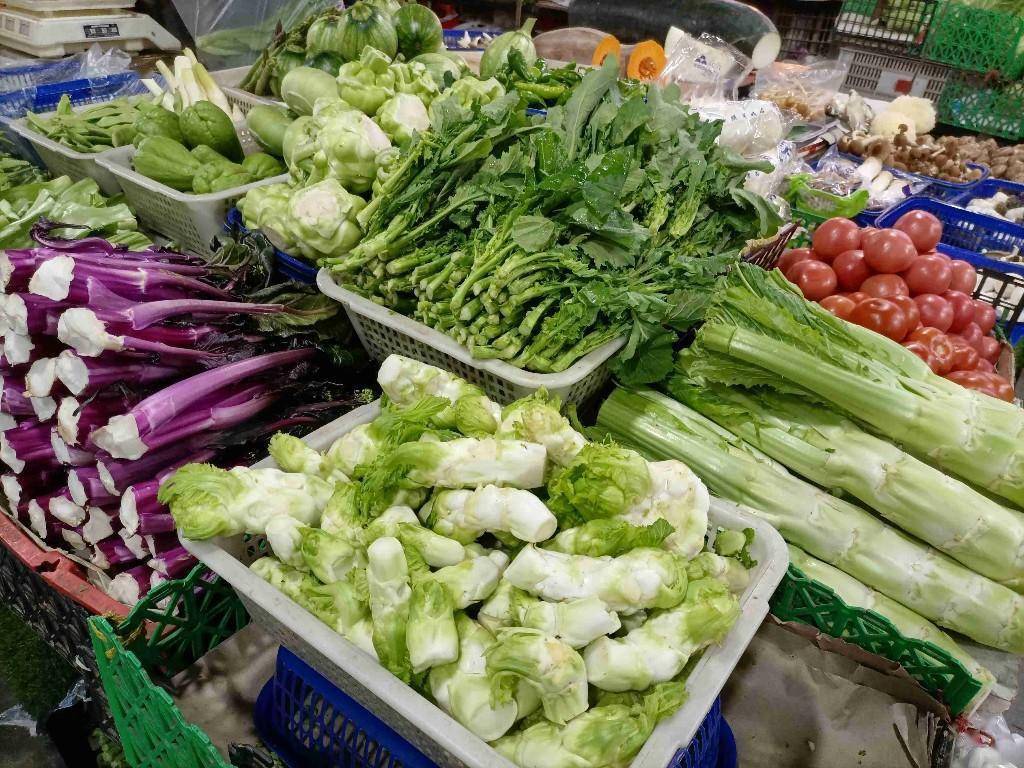 在同一菜市內,有選擇出售整個兒菜的商傢,其擺放的寶塔狀兒菜十分亮眼。而商傢老王則隻精選瞭兒菜仔,他打趣道“傢長沒來,隻有‘兒’在”,引得顧客忍俊不禁。
