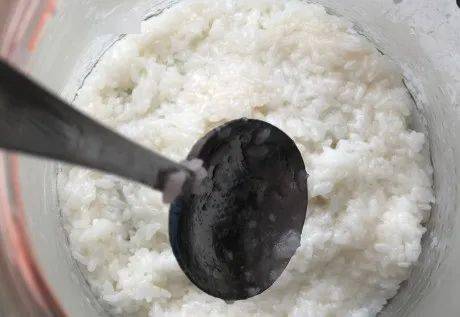 第三步,待將糯米蒸熟後,舀出在一個無水無油的大碗中,晾至不燙手的狀態,糯米裡面分次加入涼白開,保證糯米是松散的,不粘就可以瞭;