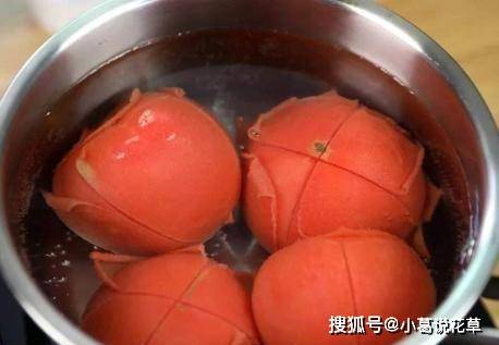 準備過程:第一步,準備適量的西紅柿,清洗幹凈,去掉根部,然後在每個西紅柿的底部劃十字,鍋中加水,水開後加入西紅柿。