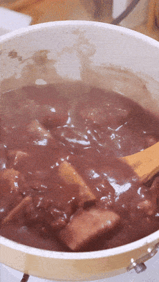 泡好的紅豆直接扔進電飯鍋,煮到紅豆軟爛開花,就取出來一半放到料理機裡仔細攪打。