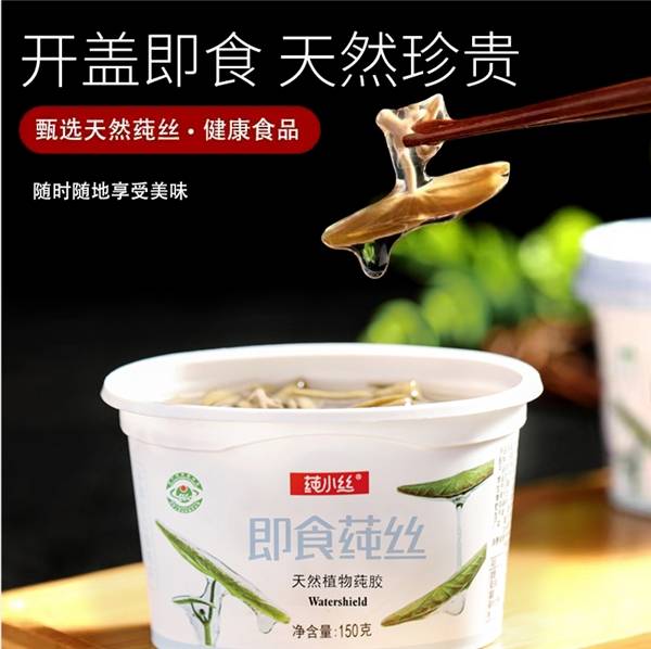 “蓴小絲”食品口感圓融、鮮美嫩滑,富含植物多糖、膠原蛋白、氨基酸、有機鋅、鈣磷鐵等多種營養物質,對人體有益。
