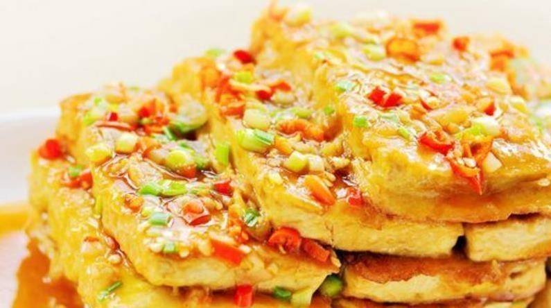 配料:老豆腐、淀粉、雞蛋、薑末、蔥、辣小米、老抽、生抽、蠔油、鹽、食用油。