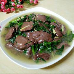 食材:韭菜一把,豬血適量,蒜末、鹽、油。