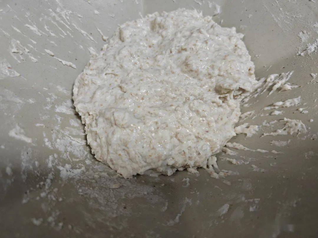2.攪拌成會比鮮酸奶更糊的狀態,這種弄出來它的口感會比較軟爛,而且Q彈好吃,然後把弄好後的面糊放著,醒個20分鐘。如果著急煮的話也可以不用醒,可以直接煮。