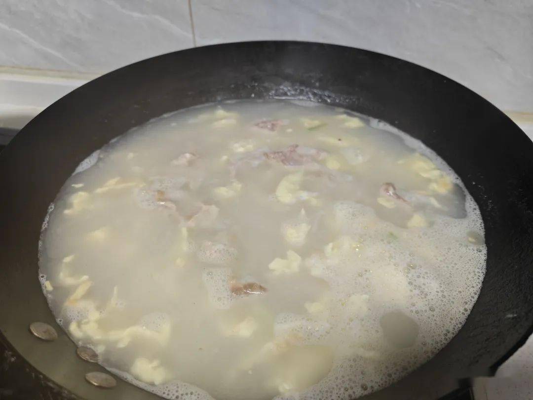 9.隨後,我們就加入適量的食鹽跟雞精調味一下,將鍋裡面的食材調味好瞭之後,我們就可以放入備好的蔥花,這樣子一份美味的面疙瘩湯就完成,這樣做出來的面疙瘩Q彈還軟爛,口感也是特別好。