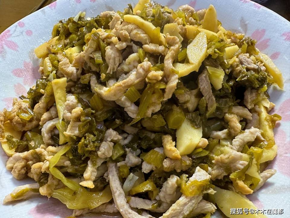 3、雪菜冬筍肉絲,上海人特別喜歡的下飯菜,口感鮮美,爽口開胃,早上過過泡飯嗲的伐的料。
