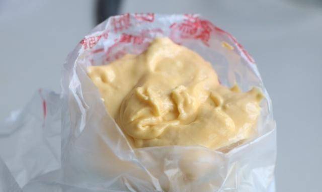 將混合好的面團放入蛋糕裝飾袋中,在袋子底部切一個稍小一些的口子。