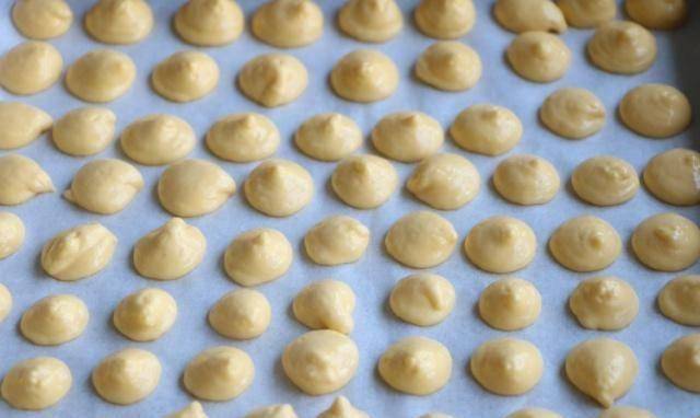 在烤盤上鋪上一層羊皮紙,在上面按紐扣大小的量,然後將其放入預熱的烤箱中。