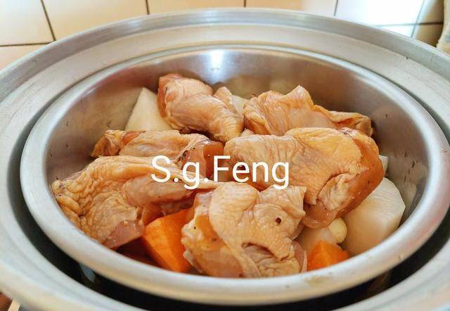在燉煮的過程中,我們可以聞到雞肉與蔬菜的鮮湯汁融合的甘甜美味。這種香味讓人垂涎欲滴,甚至比餐廳裡的菜肴還要美味。