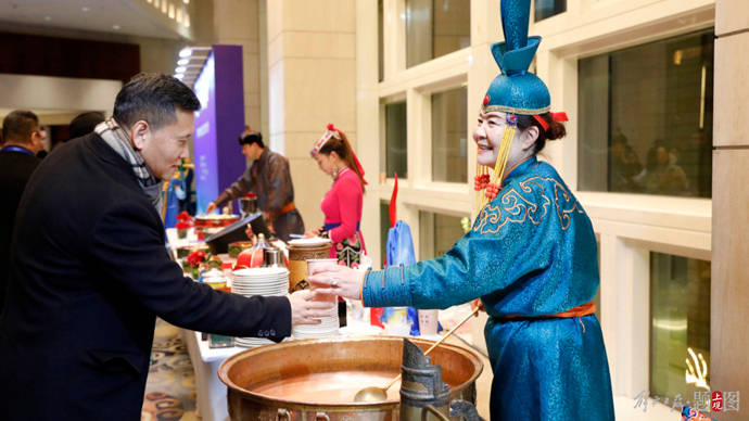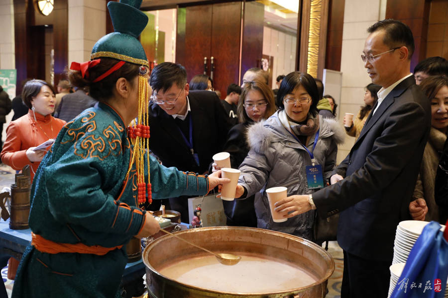 2023年12月20日,內蒙古鄂爾多斯市來滬推介冬日旅遊,做出“冬日喝奶茶,暖胃方暖心”待客策劃,現場大鍋熬制奶茶為嘉賓驅寒,泡炒米,就馓子,品烤全羊……通過美食感知鄂爾多斯的民族風情。