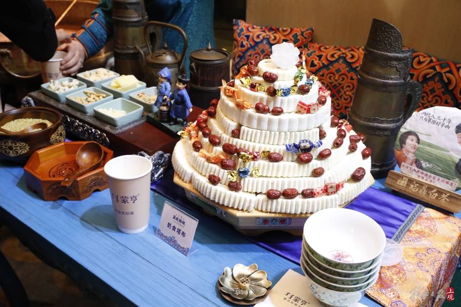 琳瑯滿目的蒙古族特色奶制品。最典型如奶皮子,是鄂爾多斯地區的傳統糕點之一,由面粉、奶制品和糖等原料制作而成,外皮酥脆,內裡柔軟香甜。