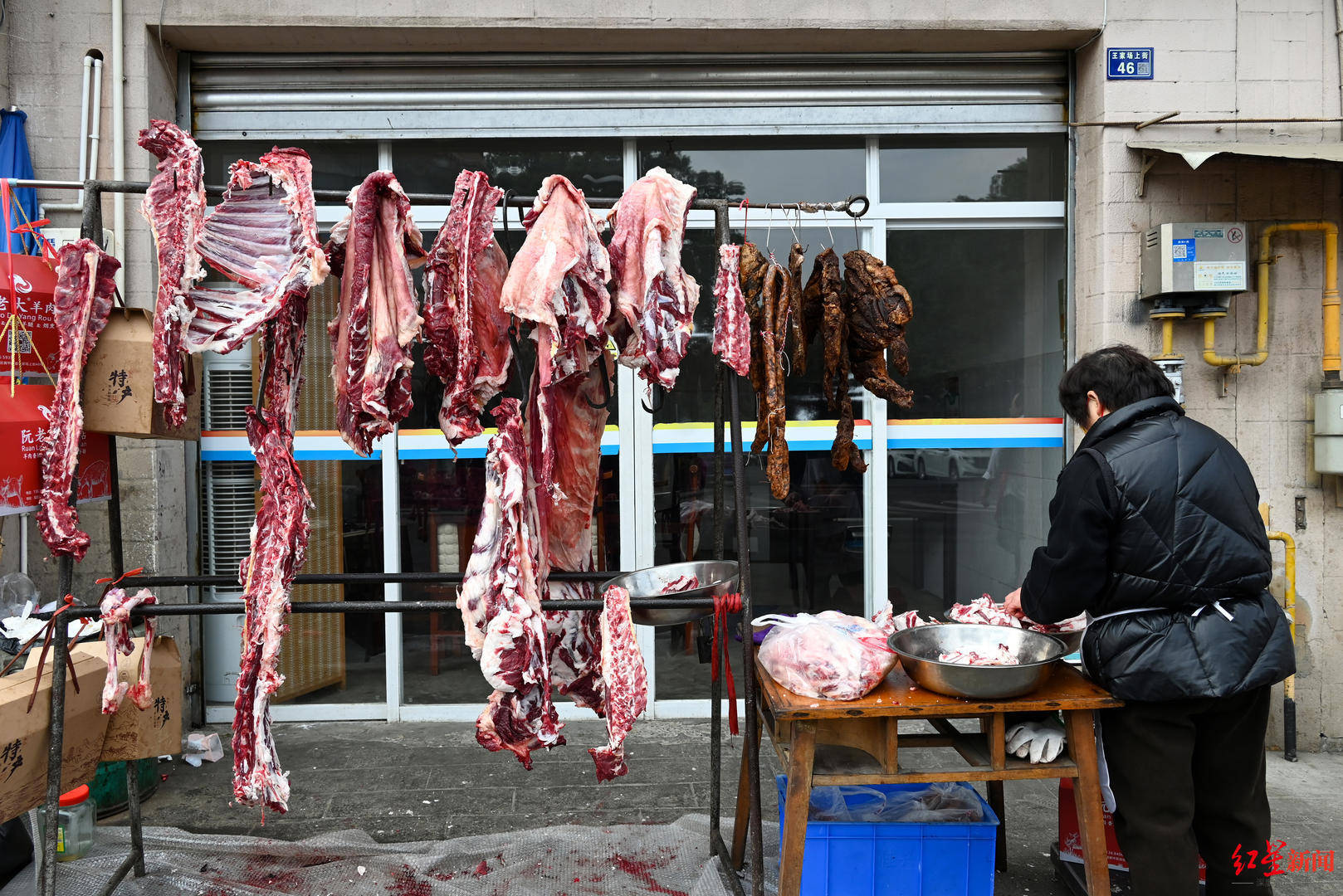 為瞭備戰冬至,阮老大羊肉老店已經提前準備瞭200多隻,總重量上萬斤的麻羊羊肉,用暖湯紅肉迎接四面八方的客人。