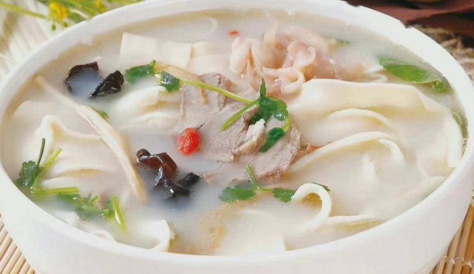 比如羊肉燴面,以羊骨打底煲出來的骨湯,白得像牛奶一樣,醇厚新鮮,羊肉奶香味濃,絲毫不膻。面片彈力筋道,再配上木耳、香菜、粉條、枸杞等食材,好吃營養。吃燴面時,先把面片撈起來放在碗裡,再舀上一勺湯汁和配菜,拌勻後,每一口都是滿滿的香氣和鮮味……地道的河南燴面,因湯好、面筋,營養高,為許多人所喜歡。