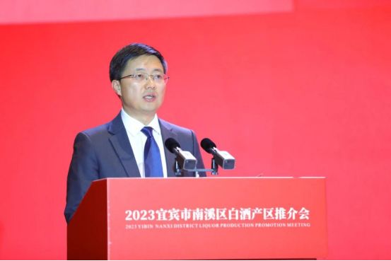 南溪區委常委、統戰部部長王財波就南溪白酒產業進行瞭專場推介,他從地裡環境、人文歷史、戰略地位、交通優勢、開放平臺、綜合經濟等6個方面說明瞭南溪白酒產區的綜合優勢。