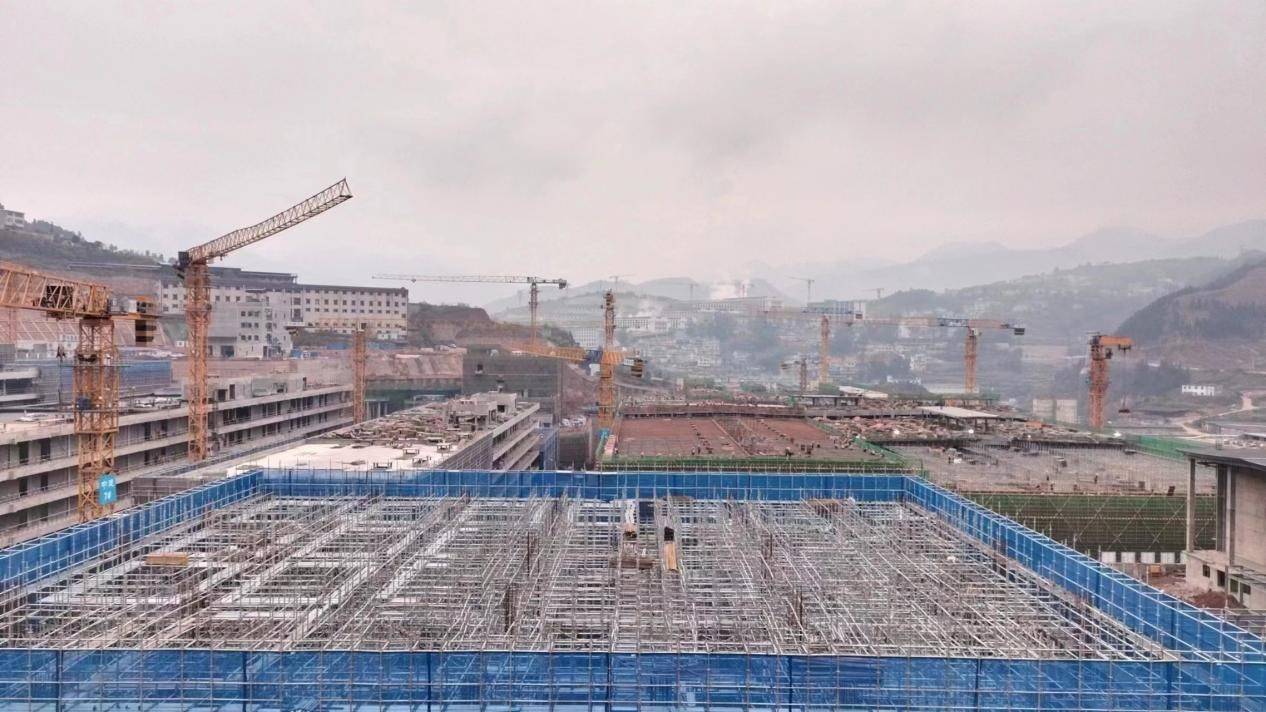 來到上海貴酒仁懷美麗工廠,目前廠區內正在進行大面積施工,多幢廠房主體基本建成,不少建築工人在廠房內部進行施工。